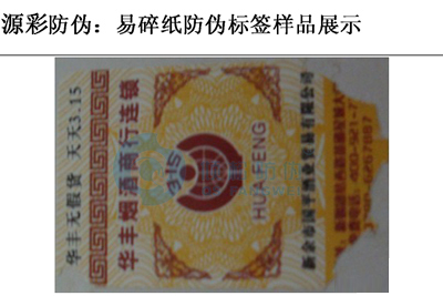 易碎纸是以易碎印刷材料为面料,背面涂有特种强力胶粘剂,以涂硅保护纸为底纸的一种复合防伪材料。易碎纸不干胶标签是不干胶标签中重要的一种,其面料断裂强度远低于胶粘剂粘合能力,它具有粘贴后不能完整剥离、不可再利用的特点。易碎纸不干胶面材经印刷﹑模切等工序加工后,制成易碎标签或易碎贴,也称商品易碎质保贴,它主要应用于用一些用正规质保手段难以准确质保的非常规商品标识方法。